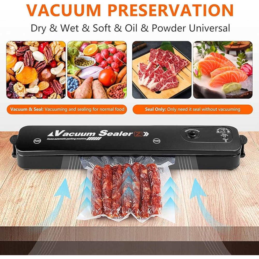 🧊 Conserva por más tiempo: Prolonga la frescura de alimentos gracias al sellado al vacío hermético, ideal para carnes, verduras, pescados, alimentos cocinados o deshidratados.