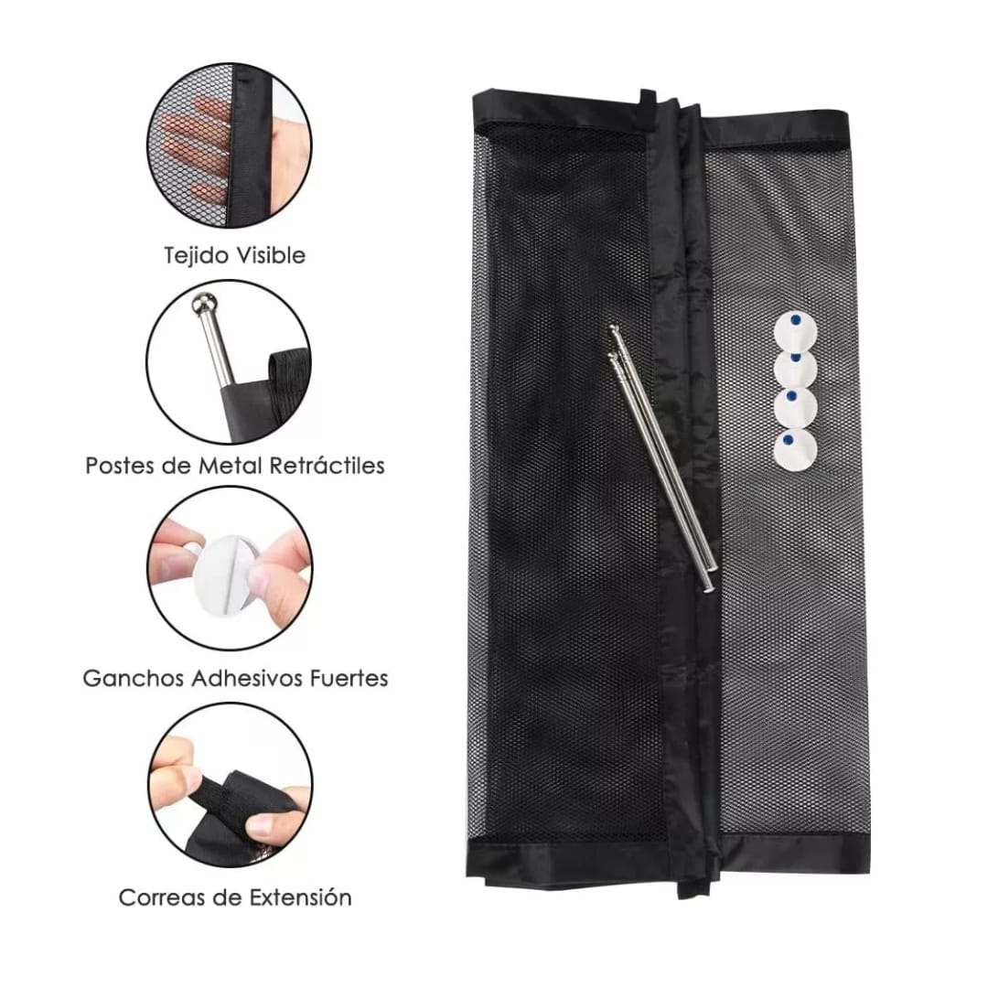 Esta malla de seguridad multifuncional es perfecta para mantener a tus mascotas o niños seguros en un espacio específico, sin complicaciones ni instalaciones permanentes.